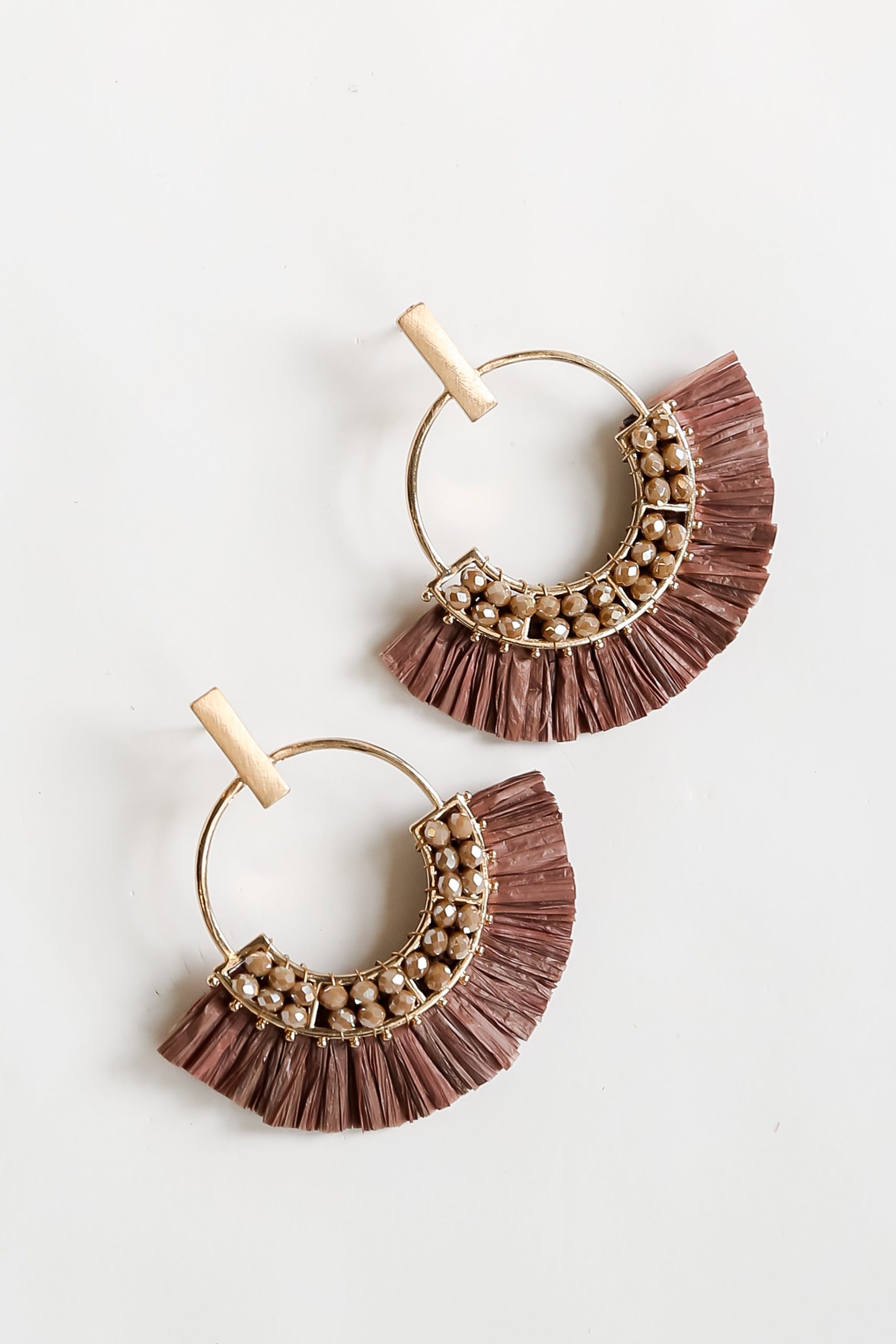 Attracting compliments (and admirers) is easy in the Brooke Fringe Statement Earrings! These trendy earrings start with a stud post back and have a circle shape with straw fringe + beading. Add these fun earrings to a maxi dress + booties to add a boho touch to your look! Available in 3 colors. Gold Plated Circle Shape Straw Fringe Beading Stud Post BackOne Size | Length 2.5”