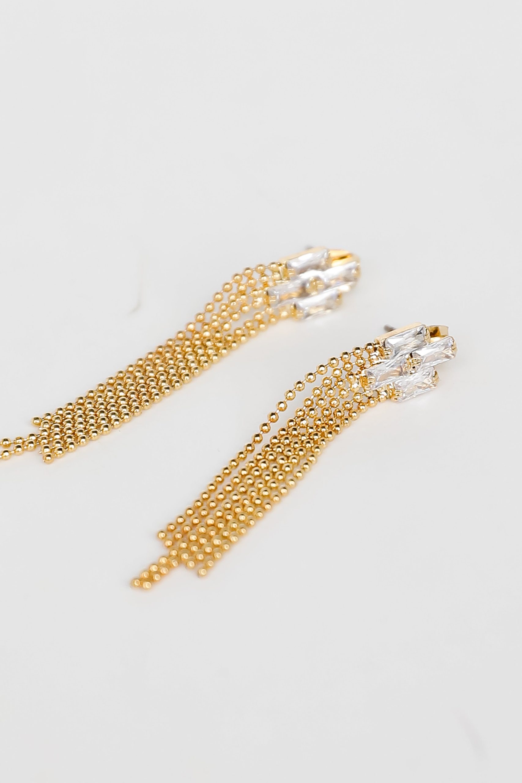 FINAL SALE – Kira Gold Rhinestone Beaded Fringe Earrings
