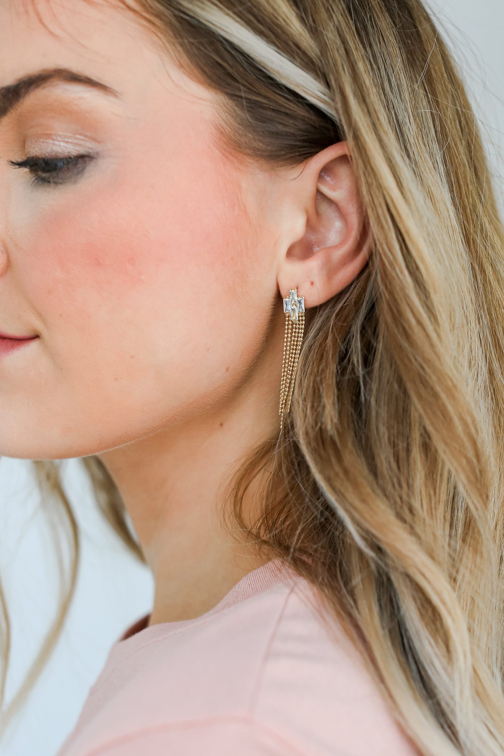 Make sure that you looked poised from head to toe by accessorizing with the Kira Gold Rhinestone Beaded Fringe Earrings! These trendy earrings start with a rhinestone stud post back and fall to beaded fringe chains. Add these fun earrings to a black dress + heels to add a chic touch to your date night look! Gold Plated Rhinestones Fringe Stud Post BackOne Size | Length 2”